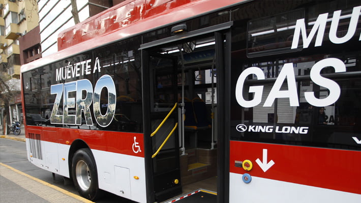 26 de Julio de 2019. La ministra de Transporte y Telecomunicaciones de Chile, Gloria Hutt, presentó el nuevo autobús a gas natural del sistema Red que circulará por las calles de la capital.