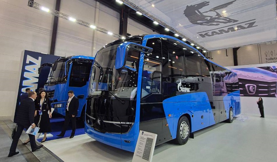 17 de Octubre de 2025. La presentación del nuevo autobús turístico Kamaz-52229 propulsado por gas natural comprimido (GNC) tuvo lugar en el Foro Internacional del Gas de San Petersburgo, Rusia.